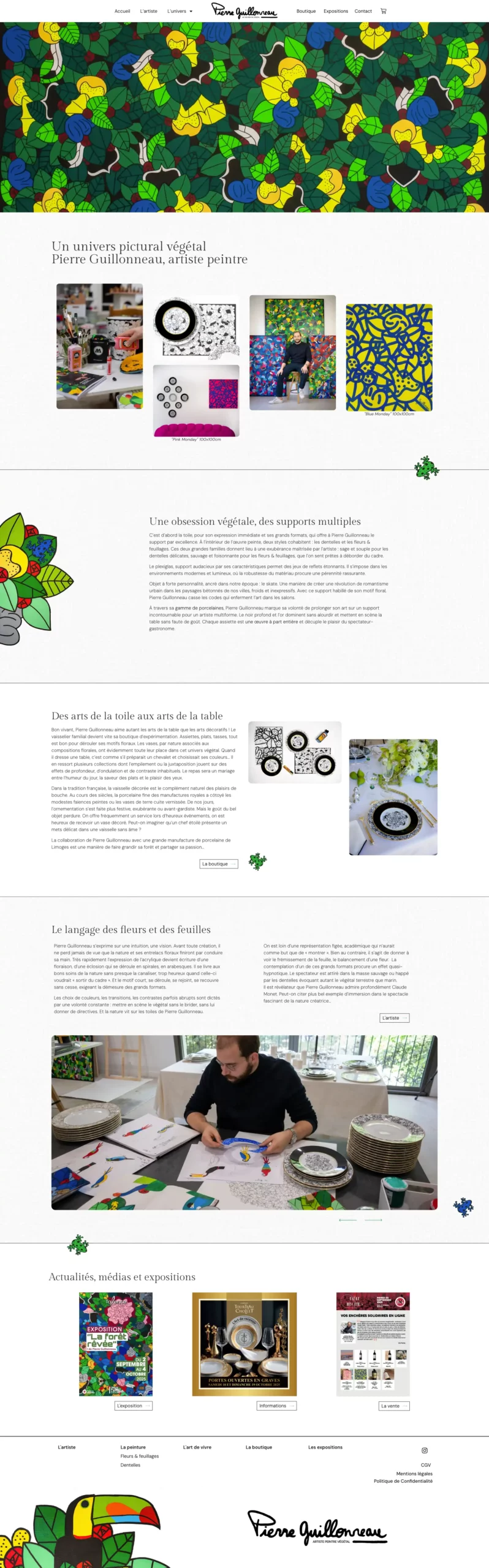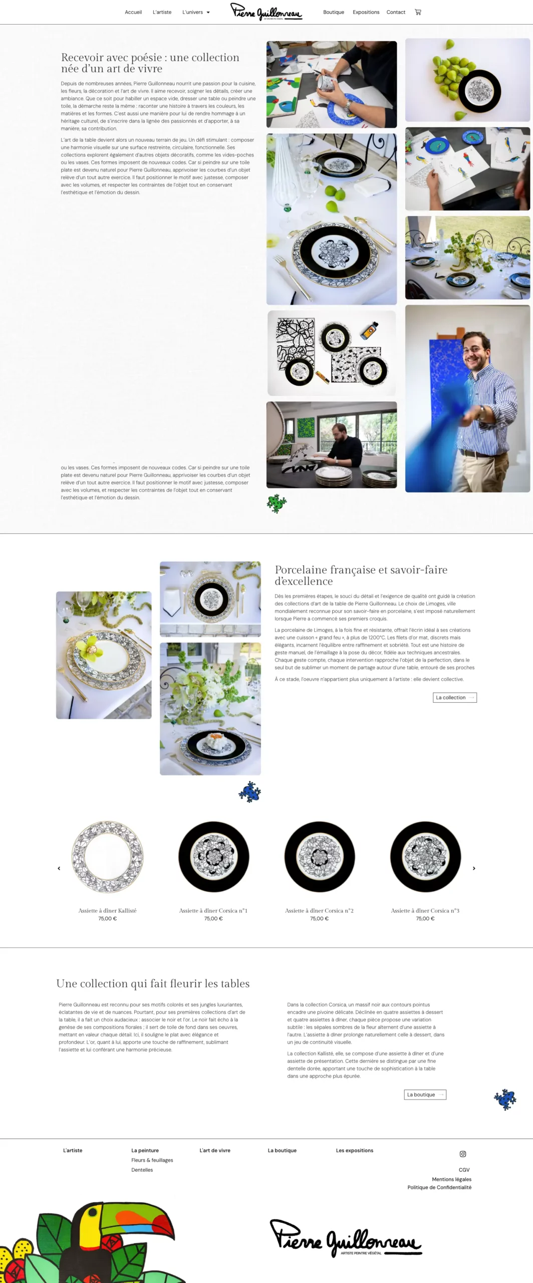 Pierre Guillonneau est un artiste peintre dont l’univers végétal s’inspire directement de la nature. Son travail se décline en deux axes : ses toiles, présentées en galerie et en exposition, et une collection de porcelaine de Limoges illustrée de ses motifs.